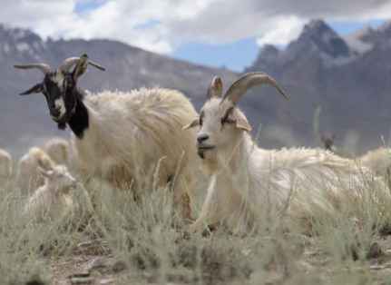 Our cashmere comes from the highlands of China and Mongolia. There, the cashmere goat lives in an inhospitable climate with temperatures as low as minus 40 degrees Celsius. To survive in this climate, the goat develops a dense undercoat, which is used to make our cashmere. Only about 200 grams of this very fine down can be obtained per goat annually. This valuable cashmere is further processed in Scotland. This cashmere is considered the softest and finest in the world.